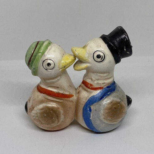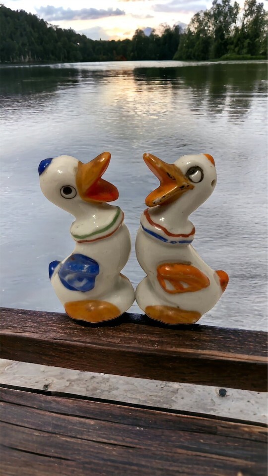 Vintage Anthropomorphic Happy Ducks W/Collars Circus Salt Pepper Shakers.