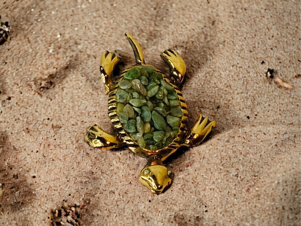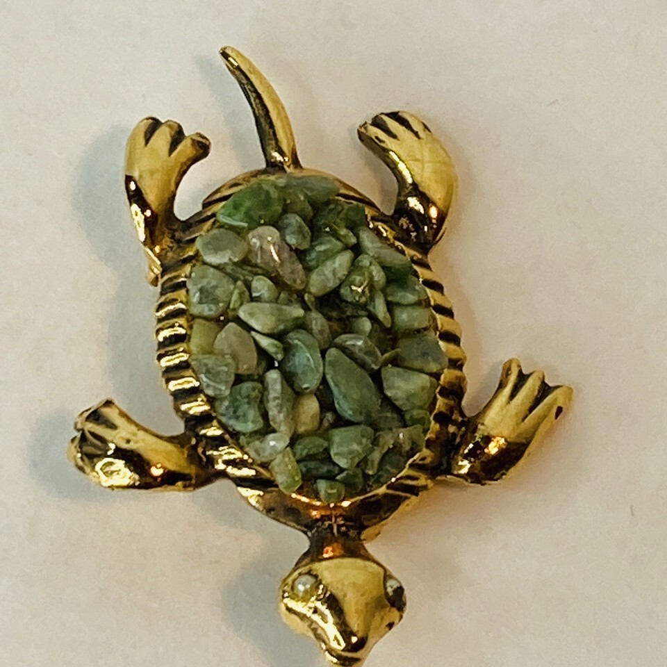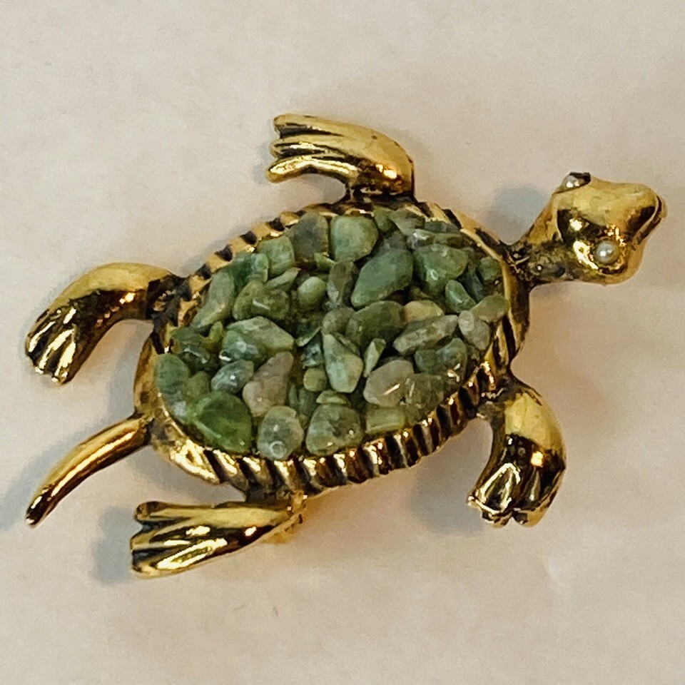 Vintage Green Jade Chip Gold Tone Turtle Pin and 49 similar items