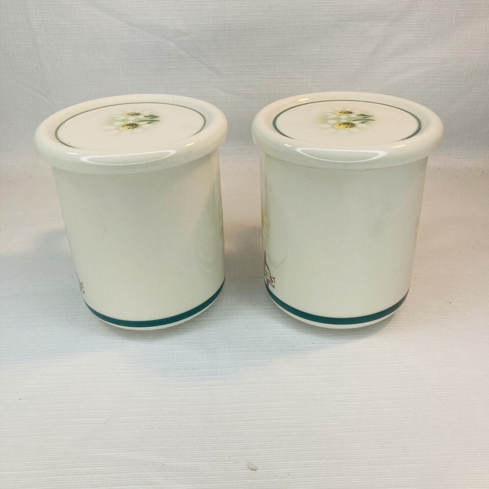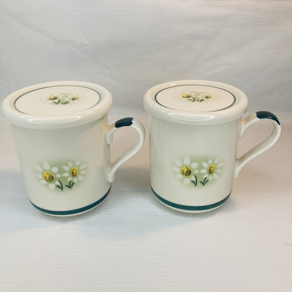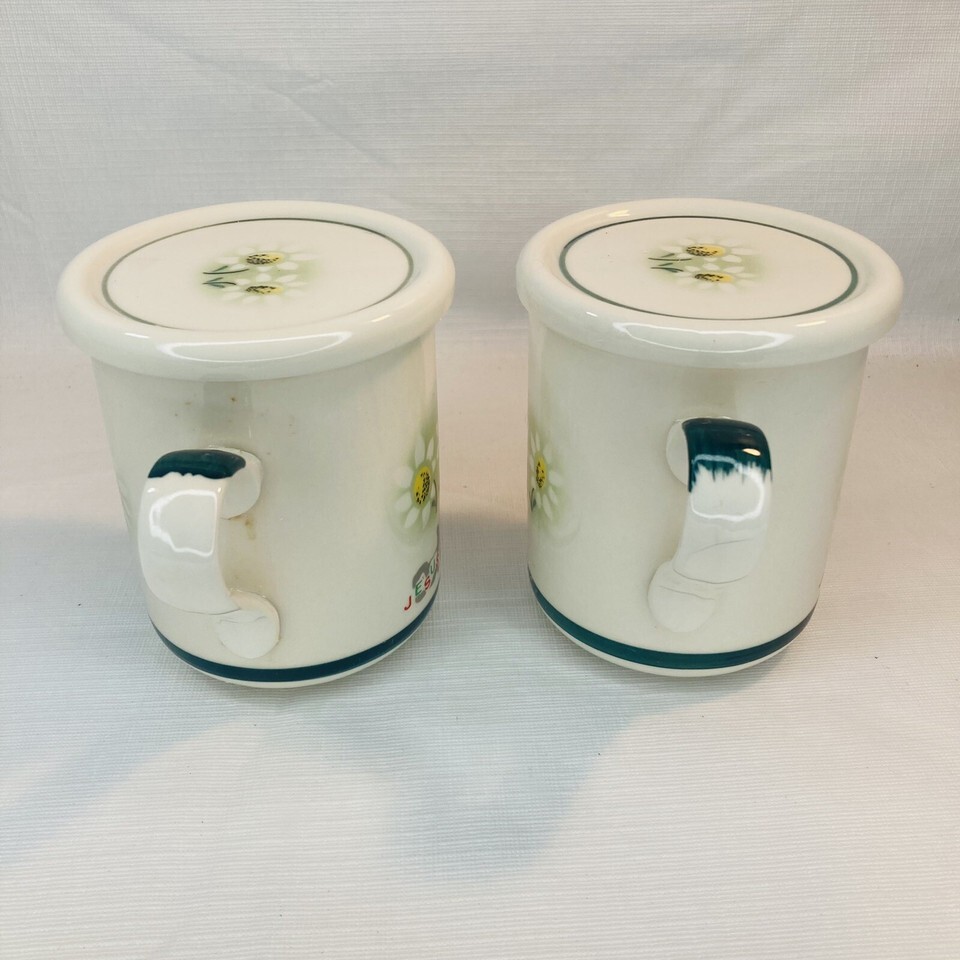2 Jasmin Original Europa White Ceramic Lidded Coffee Mug Jesus Christ Daisies