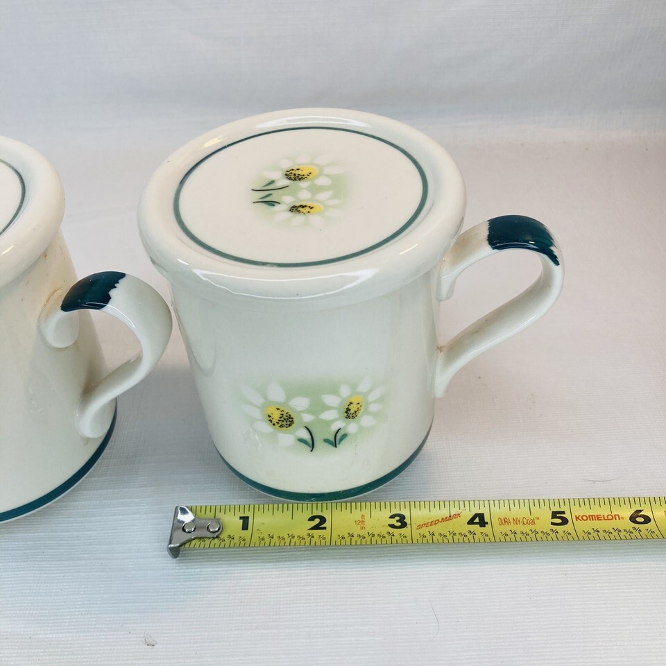This is a pair of 2 vintage mugs made by Jasmin. Mug is ceramic with a fitted lid. The condition is PREOWNED with no flaws, chips, or cracks. See all photos!