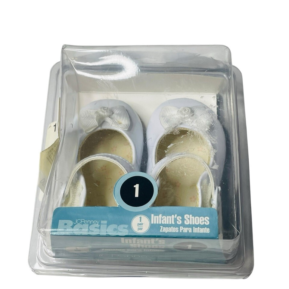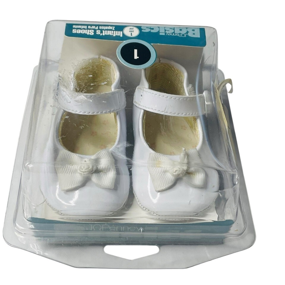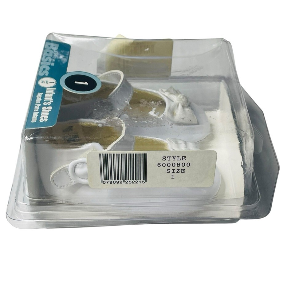 Vtg 80's Dyna Kids White Leather Size 1 Infant Baby Childs Shoes Soft Soled NOS