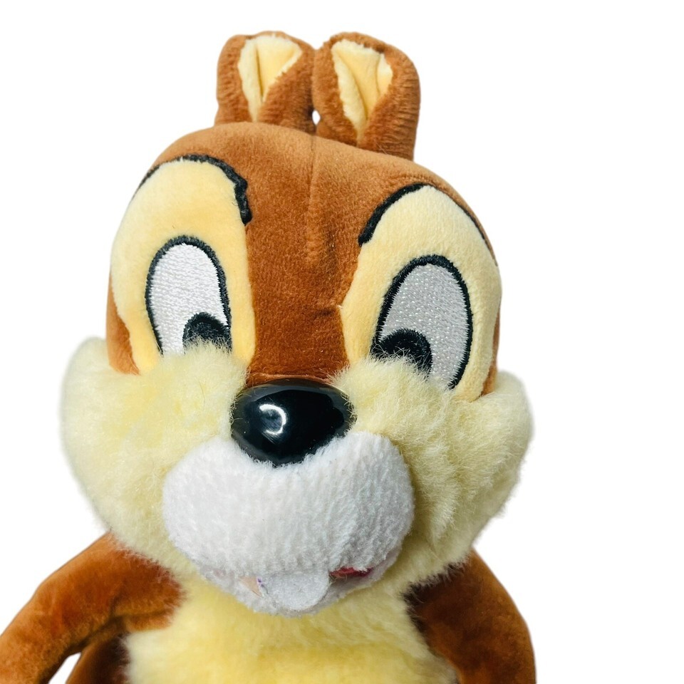 Delight in the whimsy of Disney with this charming Chip Dale plush toy, a must-have for any Disneyana enthusiast or collector. Standing at an adorable 9 inches, this brown-stuffed Chipmunk is ready to bring a touch of magic and nostalgia to your collection or to brighten the day of someone special.