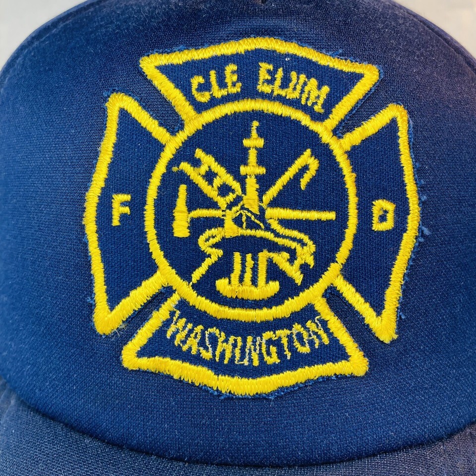 Nice vintage foam trucker style hat with yellow embroidered emblem for Cle Elum Washington Fire Department. Adjustable snapback. polyester Cotton blend. Made in Korea.
