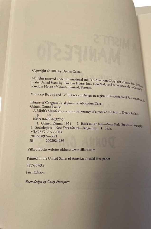 Slgned A MISFIT'S MANIFESTO: THE SPIRITUAL JOURNEY OF A Rock & Roll Donna Gaines