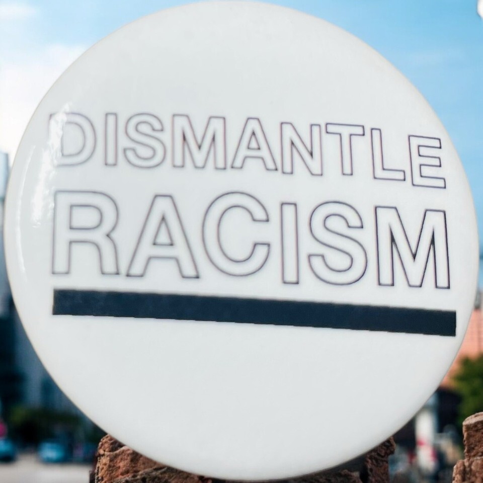 Show your commitment to dismantling racism with this pinback button pin. The bold design features a white and black color scheme that is sure to catch the eye of anyone who sees it. The pin is made from high-quality materials and is designed to last, ensuring that you can wear it with pride for years to come.