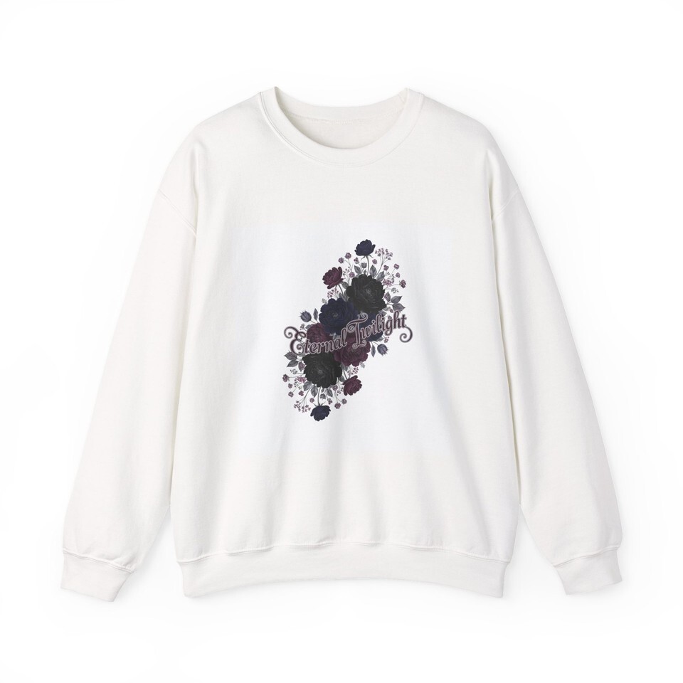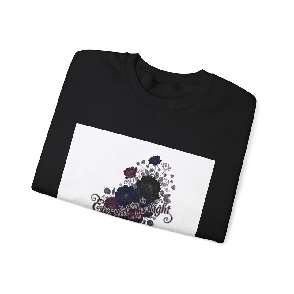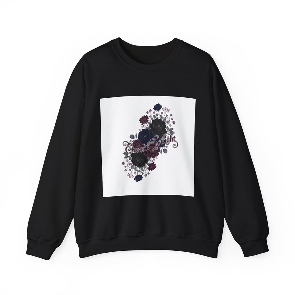 Dusty dark roses and delicate vines form a moody botanical cluster at the chest, blending soft gothic florals with a quiet, nocturnal palette. The subtle inked roses and muted plum highlights sit within an ornate, vintage-inspired silhouette that reads as romantic and slightly mysterious?a wearable nod to candlelit evenings and bookish alt style. The crewneck keeps the look grounded and easy to layer, making the design a low-key statement piece for colder months and dimly lit outfits.