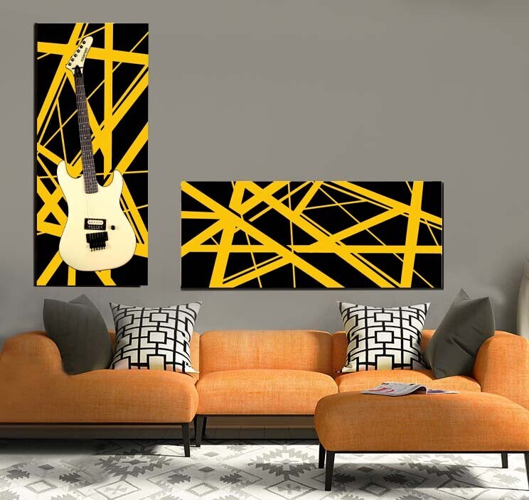 Wall Art Guitar Display Décor Panes Abstract Stripes Iconic Rock 80's
