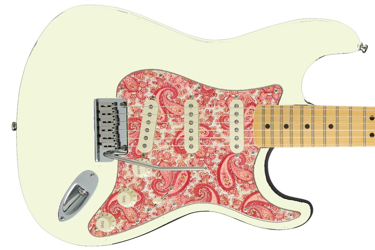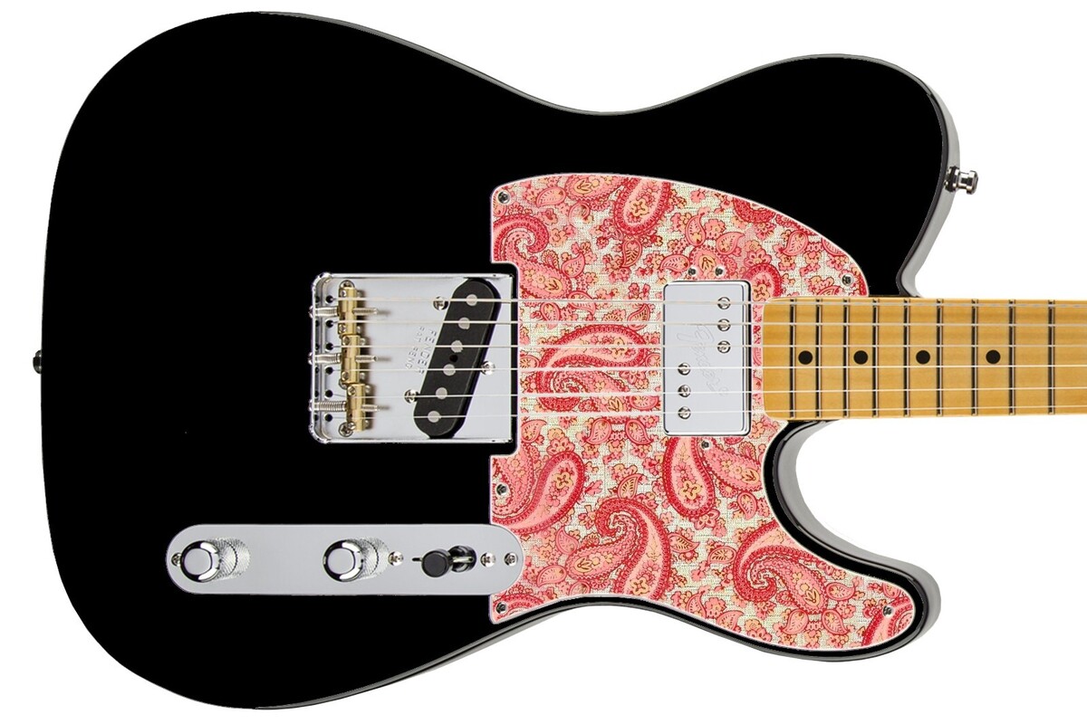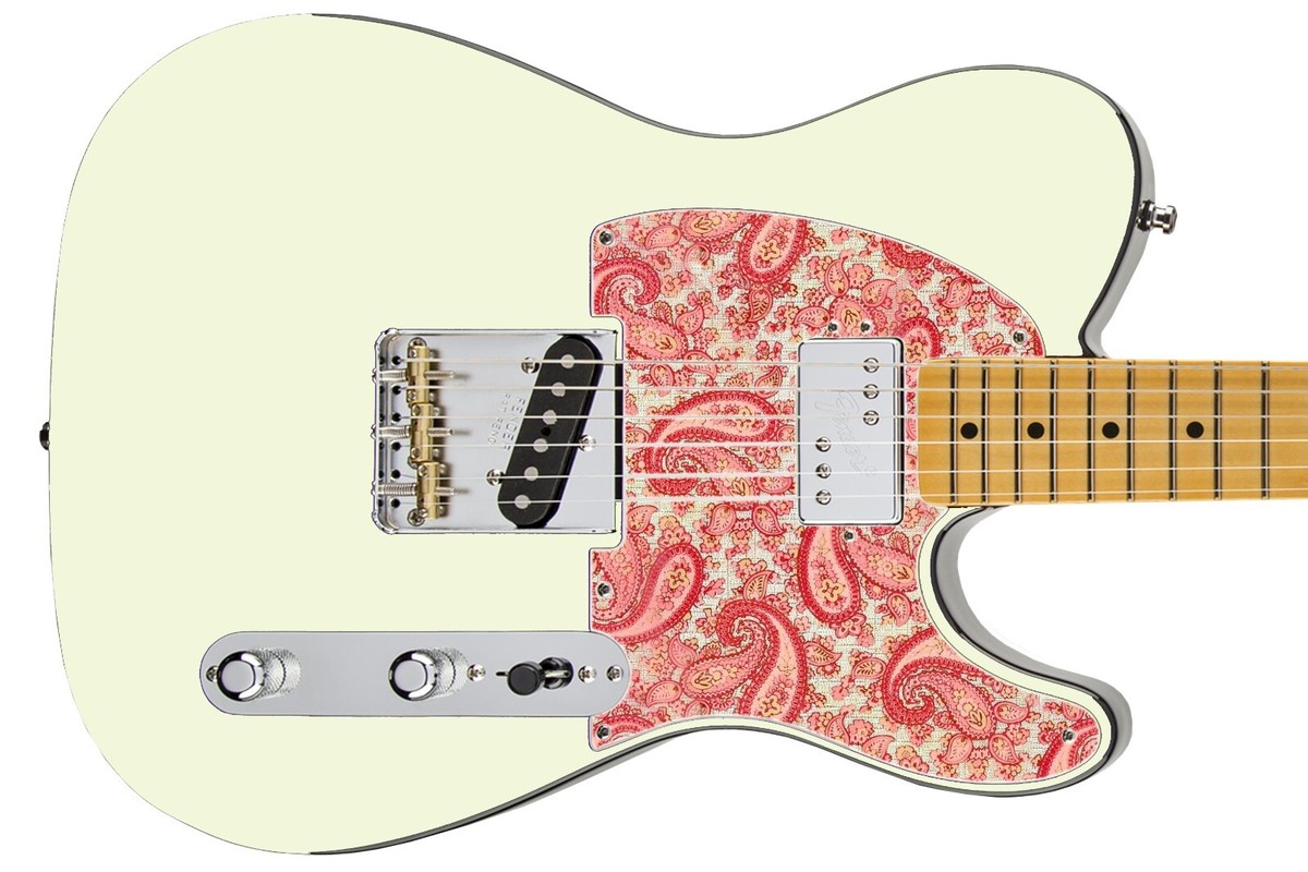 Pickguard Headstock Tremolo Skin Wrap Reskin for Guitars - 68 Pink Paisley Tele
