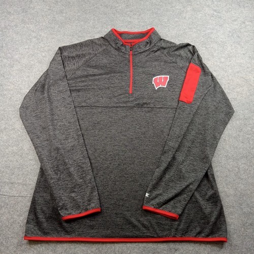 Wisconsin Badgers Shirt Men Large Red Fanatics Long Sleeve 1/4 Zip New L