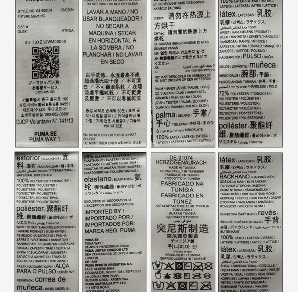Latex, Polyester, Elastane |