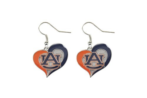 Aminco NCAA Auburn Tigers Swirl Heart Earrings, Team Color, Size 2.5