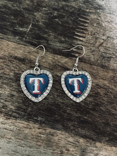 NEW WOMENS TEXAS RANGERS MLB SILVER CRYSTAL HEART EARRINGS | DANGLE DROP