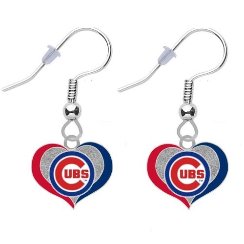NEW WOMENS CHICAGO CUBS SILVER HEART SWIRL DANGLE DROP EARRINGS MLB