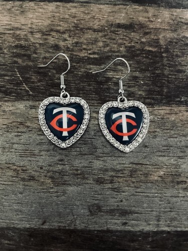 NEW WOMENS MINNESOTA TWINS MLB BASEBALL SILVER CRYSTAL HEART EARRINGS DANGLE