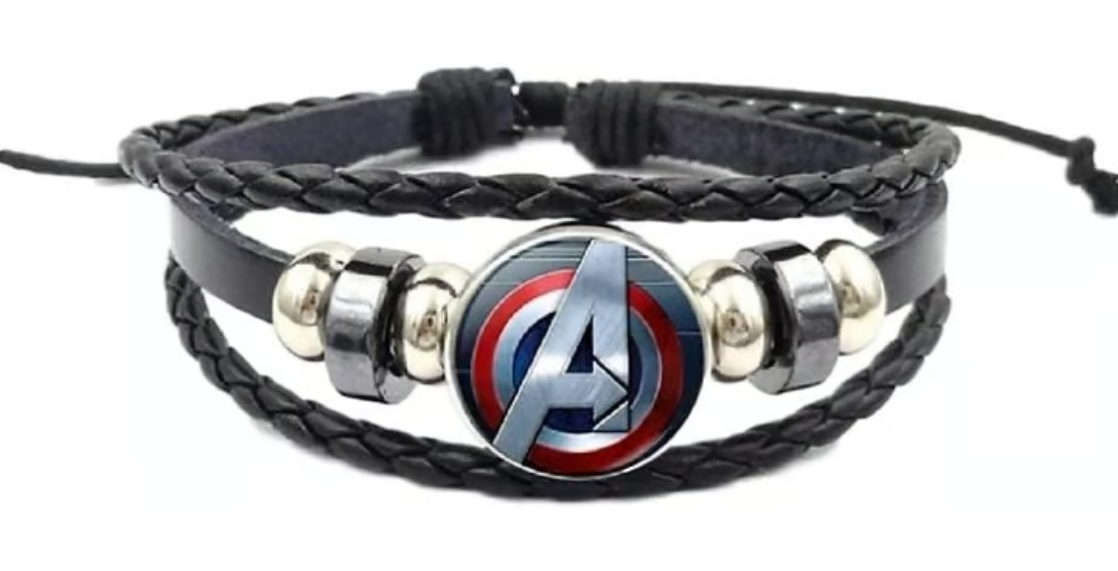NEW MENS AND WOMENS MARVEL'S THE AVENGERS LOGO GLASS DOMED BRAIDED BRACELET