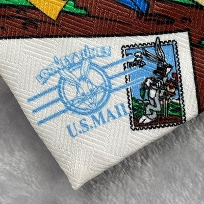 Looney Tunes Neck Tie Bugs Bunny Airplane USPS Stamp Collection Vintage 90's