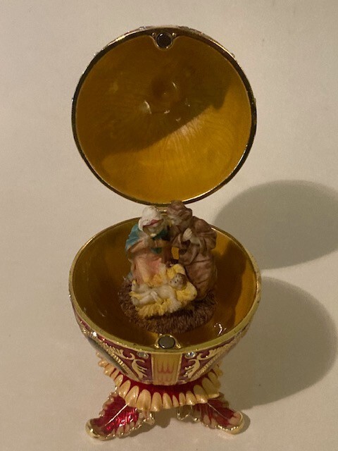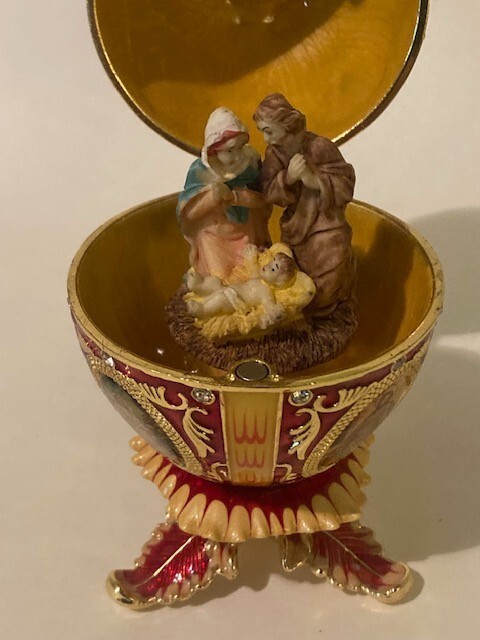 Vintage Fabergé Egg Replica Religious Nativity Royal Jewel Egg Trinket Box
