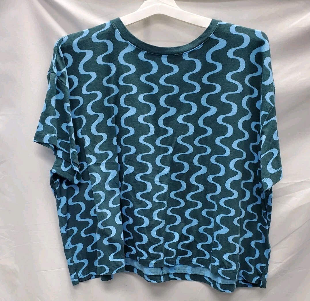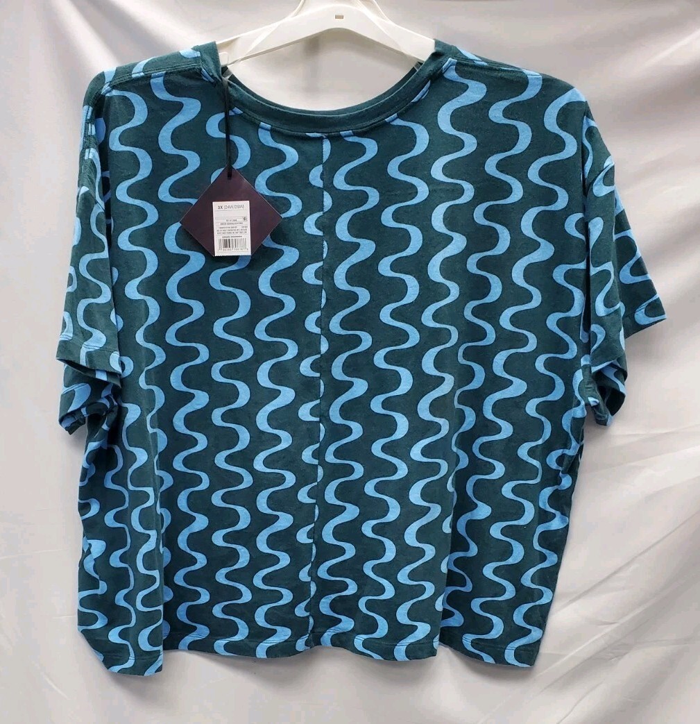 Ava & Viv Women's 3X Plus Size Short Sleeve Jersey Boxy T-Shirt Green Blue Wavy