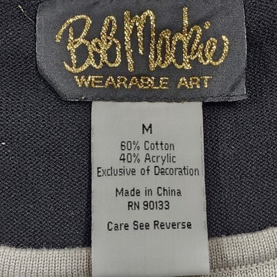 Bob Mackie Wearable Art Black Lace Up Crystal Rhinestone Embellished Sweater M