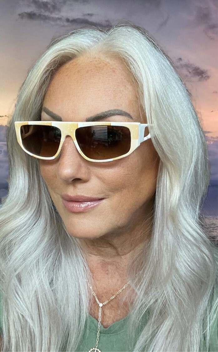 Vintage sunglasses 1970s White/Orange print Brown Gradient Lens NO RX- in great condition, minimal scratching.Fits a large head like mine!
