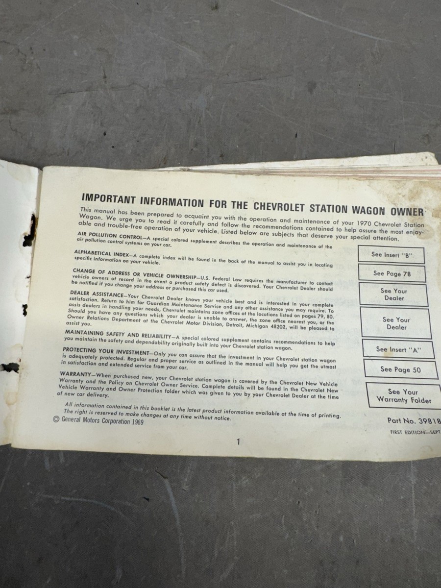 1970 Chevy Impala Station Wagon Factory Owner Manual Warranty Kingswood Townsman