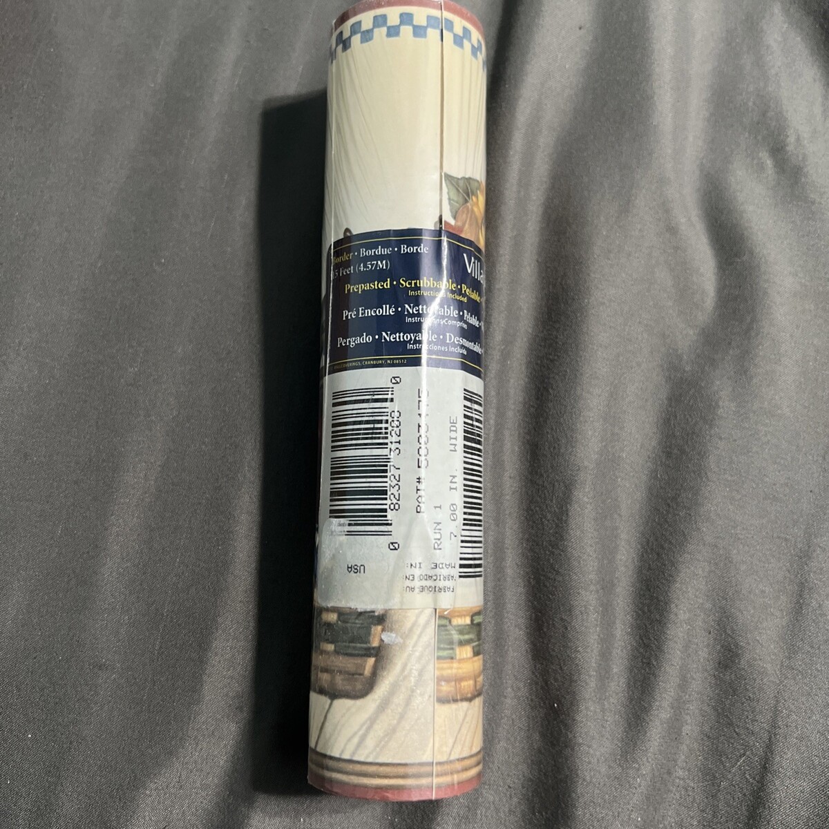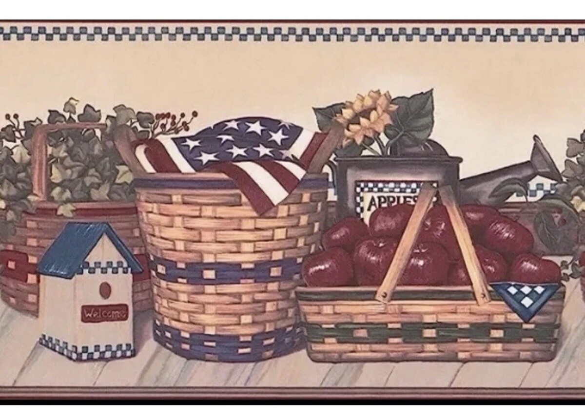 Red Apple Basket Sunflower Leaf American Flag Patriotic Kitchen Wallpaper Border