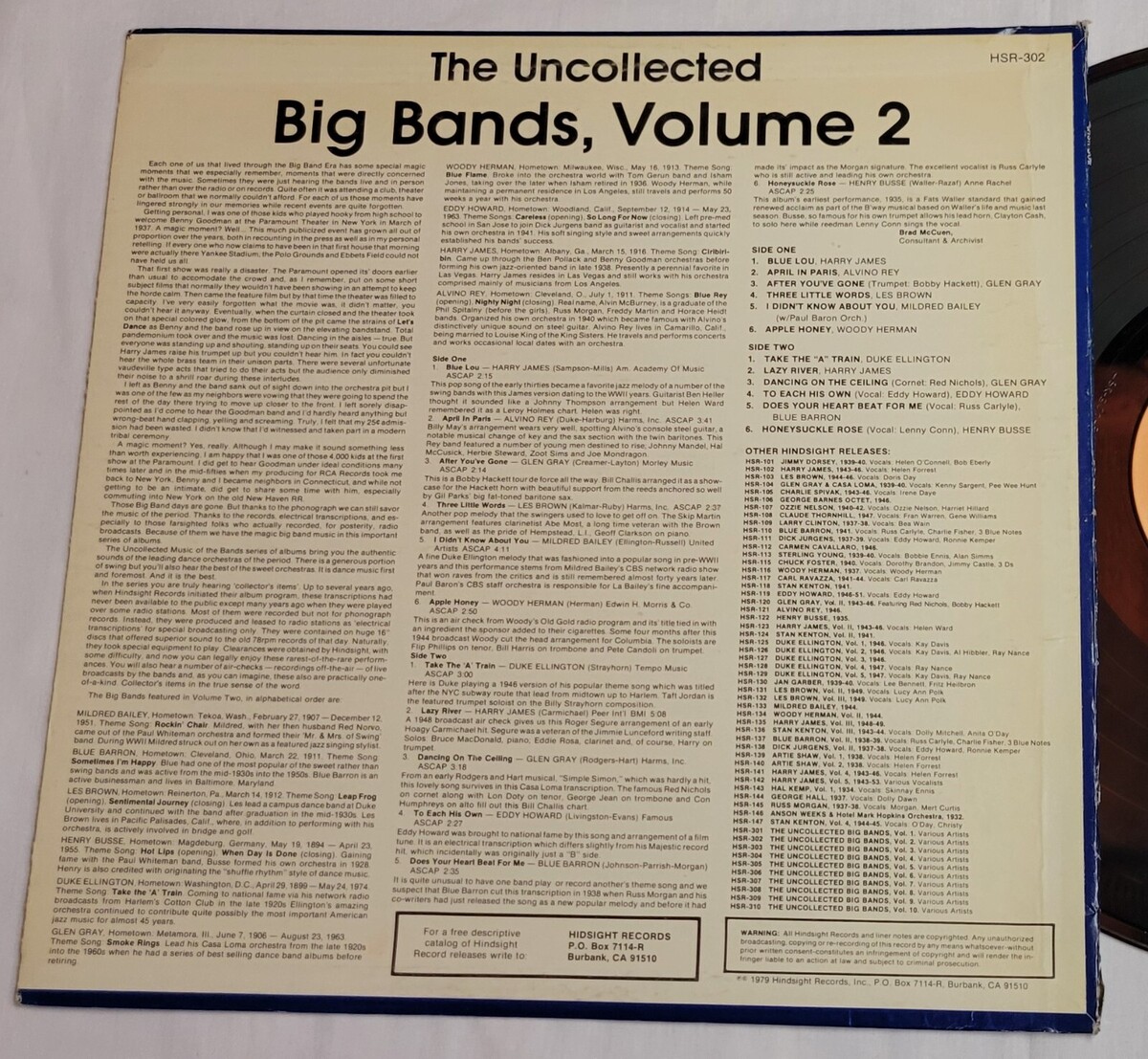 The Uncollected Big Bands Vol. 2 Duke Ellington Harry James - Vinyl Record 33LP