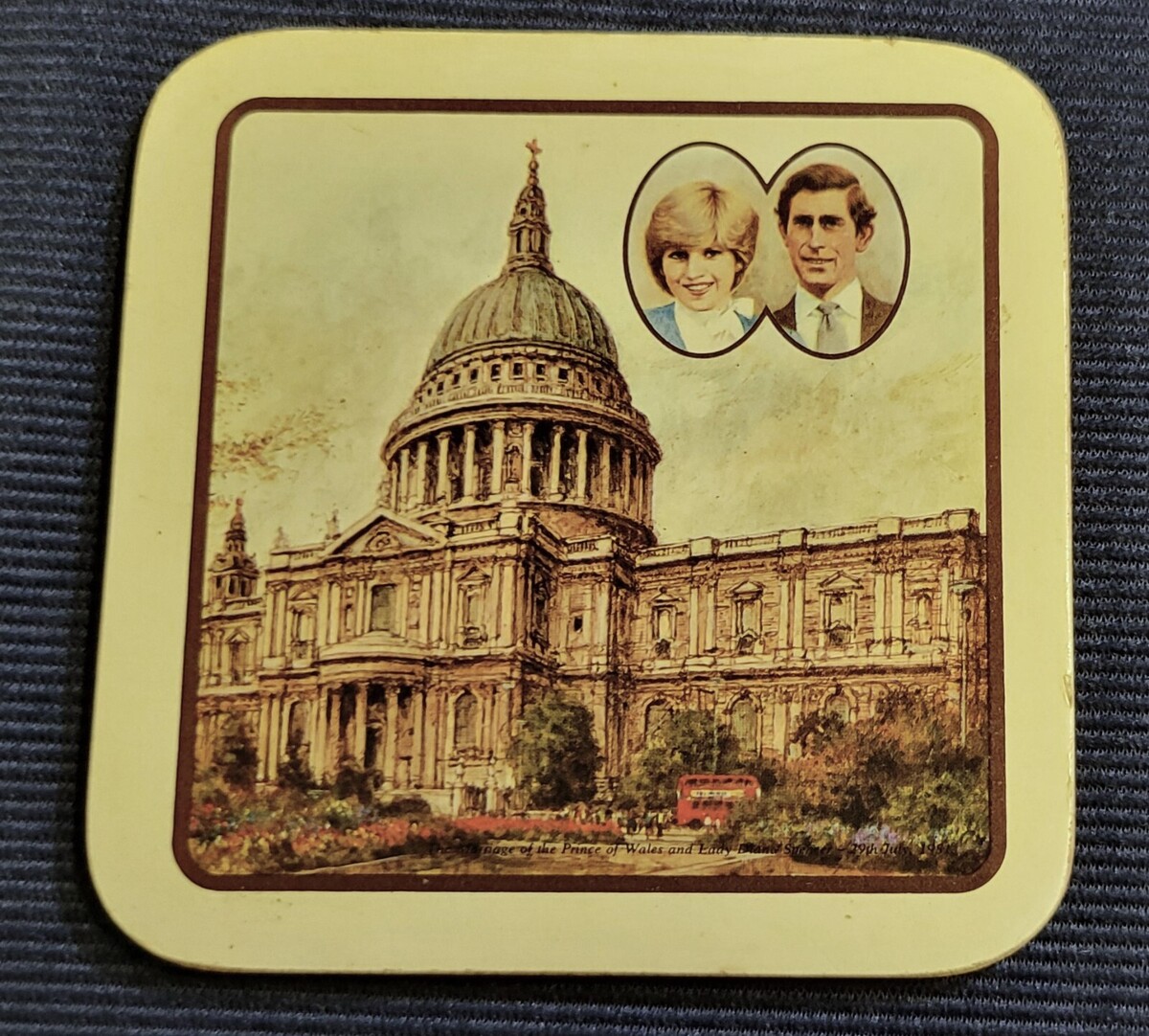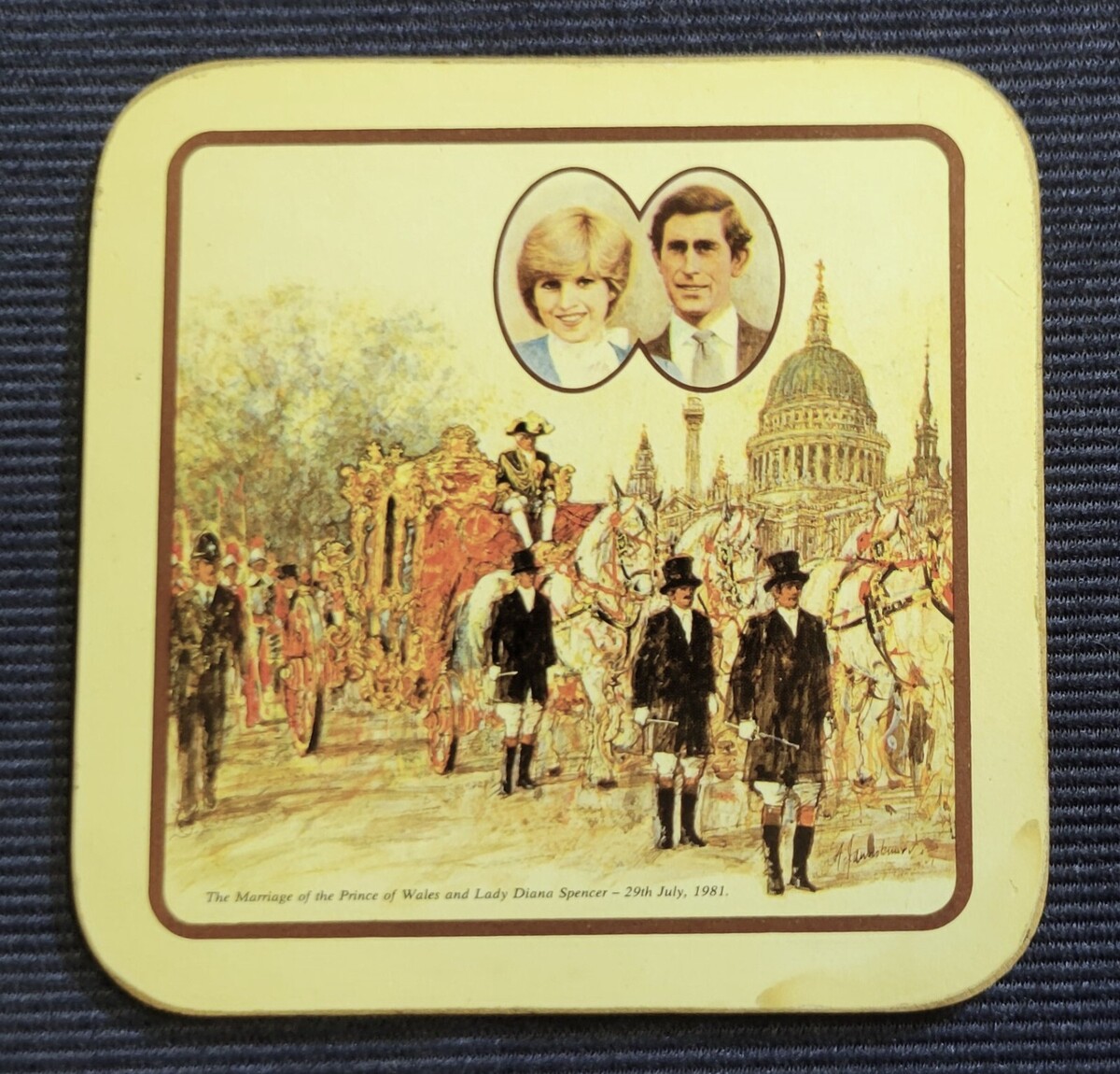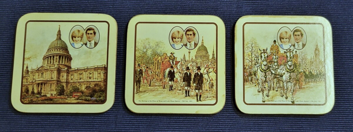 "The Marriage of the Prince of Wales and Lady Diana Spencer - 29th July, 1981" printed on each of the coasters.