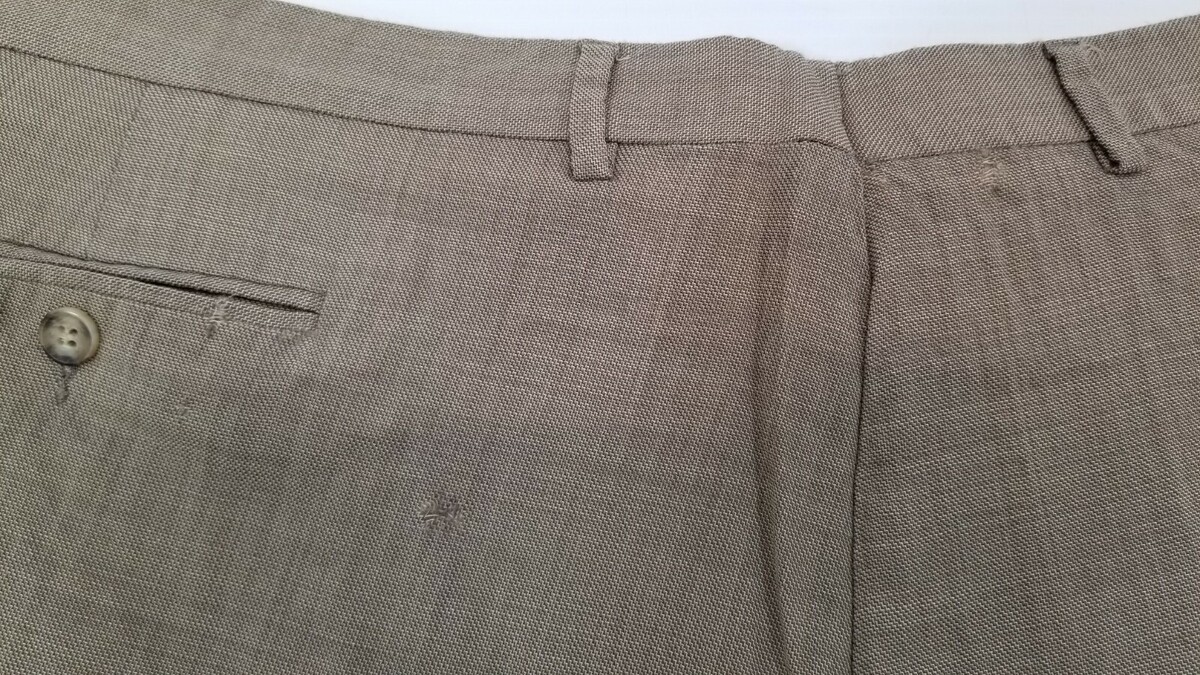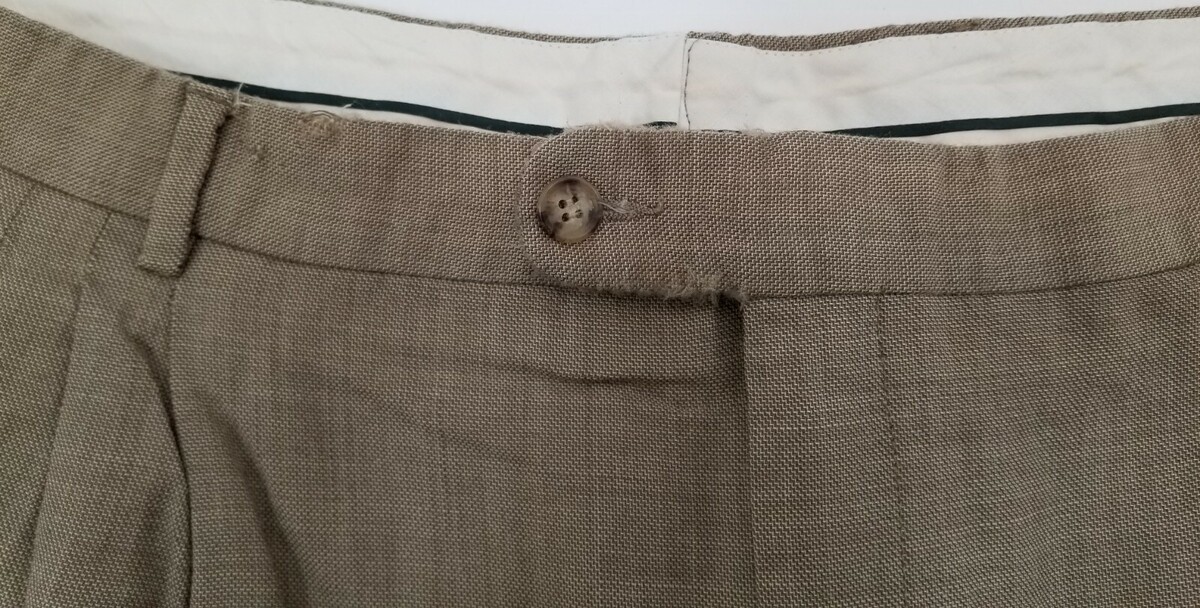 Pants are leftover drama club wardrobe costume pants. They show significant signs of age, use and wear including slight tears, rips, and loose threads but still have life left in them as vintage-look costume pants.