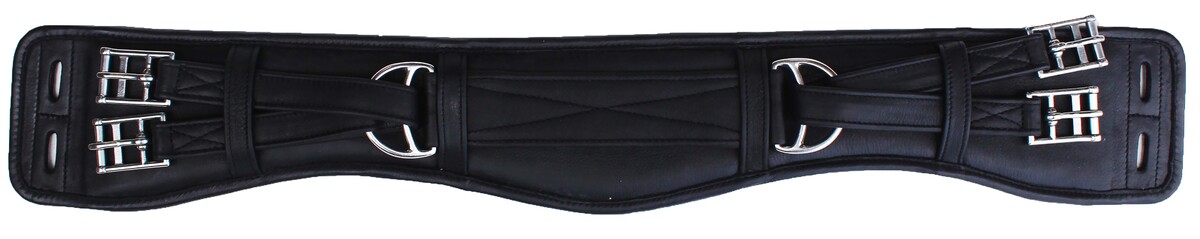 The 4-3/4" wide contoured design helps distribute pressure evenly across the girth area, reducing pinching and enhancing comfort during flatwork, training, or competition. Stainless steel roller buckles allow for smooth, easy tightening and precise adjustments, making tacking up quicker and more efficient.