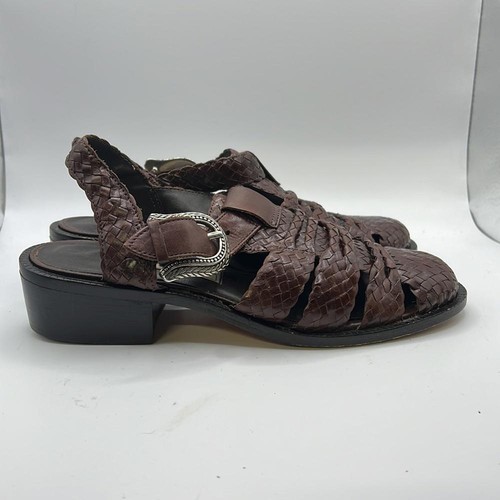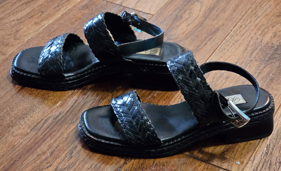 Brighton Braided Leather Sandals Black Pewter Women's Size 6M A4