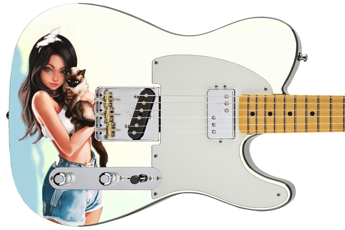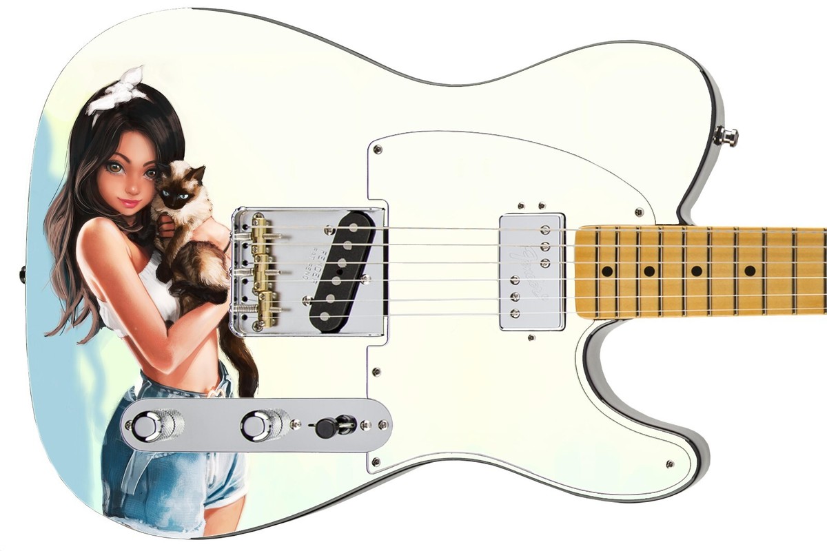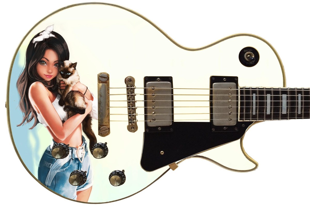 Guitar Skin Axe Wrap Re-skin Bass Reface Electric Vixen Art Gorgeous Cat 1320