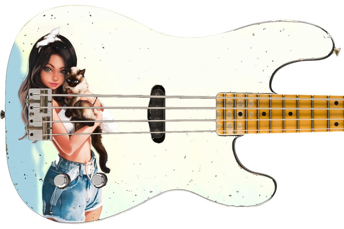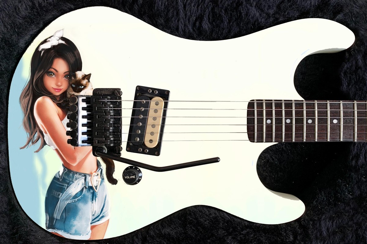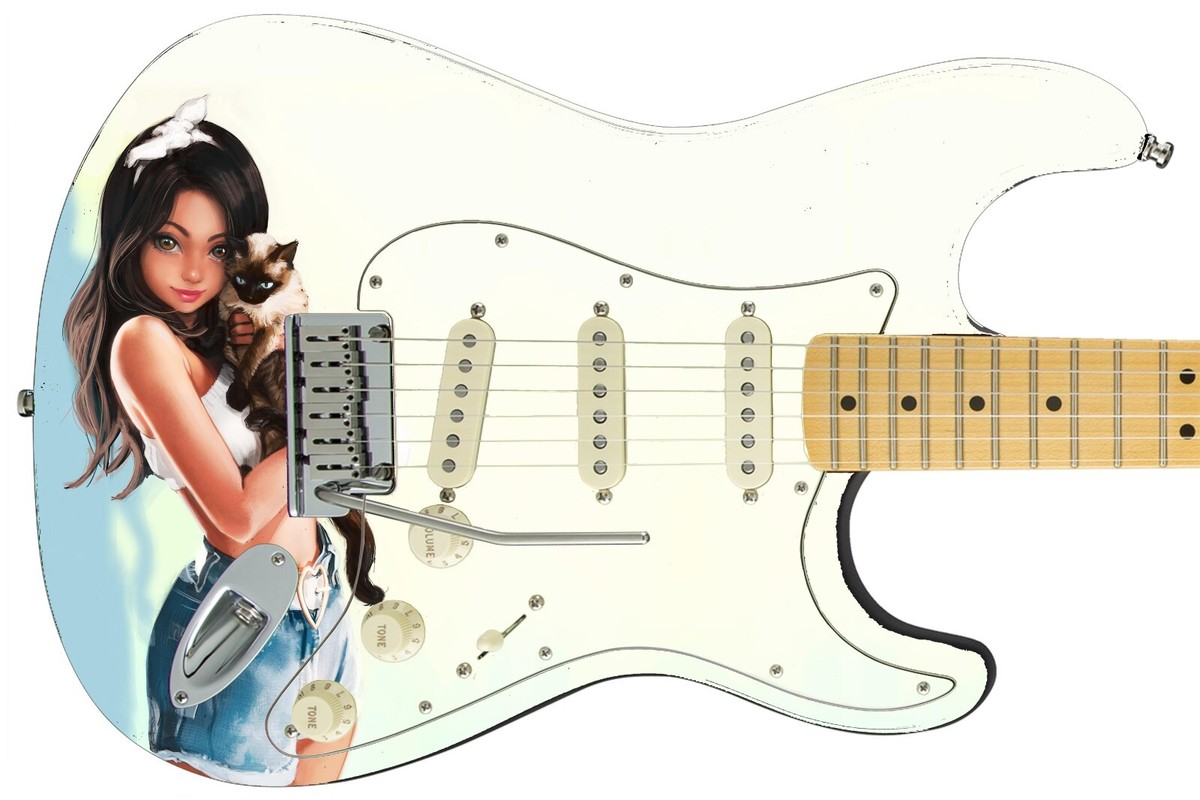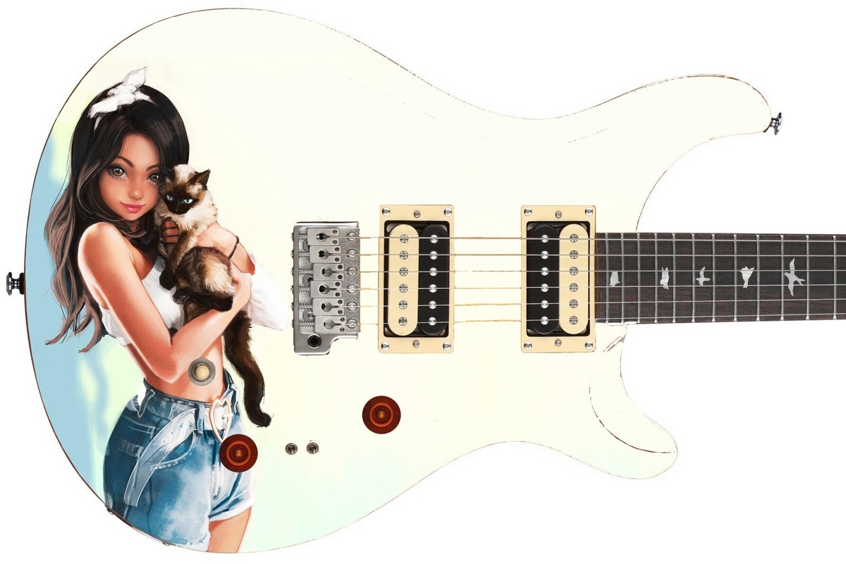 Guitar Skin Axe Wrap Re-skin Bass Reface Electric Vixen Art Gorgeous Cat 1320