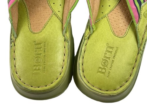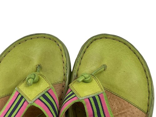 Born Flip Flop Women 39 / 8 M Drilles Shoes Green Blue Leather Toe Thong Slip-On