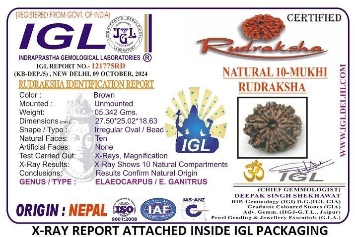 Super Collector Size 10 Mukhi Rudraksha - Nepal - IGL Certified - 27.50 mm