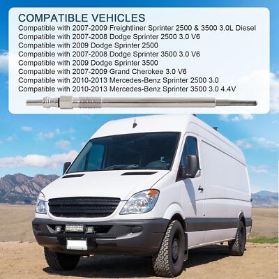 [Compatible With] This Diesel Glow Plug Compatible with 2007-2009 Freightliner Sprinter 2500 3500, Compatible with 2007-2008 Dodge Sprinter 2500 3500, Compatible with 2009 Dodge Sprinter 2500 3500, Compatible with 2010-2013 Mercedes-Benz Sprinter 2500 3500. [Replace Part Number] 68102087AA, 0250403008, 0011595001. [Function] This Diesel glow plug preheat the air in the combustion chamber in diesel engines so that they start faster when they are cold, and the replacement ideal for many vehicles on the road today. [Feature] This replacement glow plugs extremely durable ensure a long service life.Direct replacement for a proper fit and easy installation, quality materials used. [NOTE] Please confirm the OE Number and fitment table before placing order.If you are not pleased with your purchase, please feel free to contact with me.