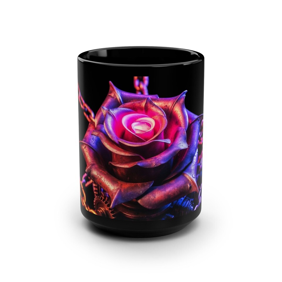 Neon Glowing Rose Black Ceramic Mug 15oz Cyberpunk Gothic Coffee Cup