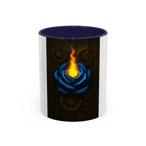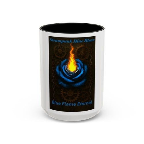 This 15oz black ceramic mug brings a touch of mechanical magic to your morning ritual. A ring of brass clockwork gears and Roman numerals sits behind a swirl of vivid, translucent flames in blues, purples, and oranges ? a design that reads like a steampunk dream caught mid-ignition. The glossy black surface gives the colors pop and the whole piece feels both bold and oddly nostalgic. It?s made for slow, focused moments: sipping coffee while sketching, reading late-night fiction, or setting the tone at a cluttered desk where ideas catch fire and time bends a little.