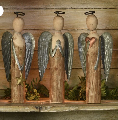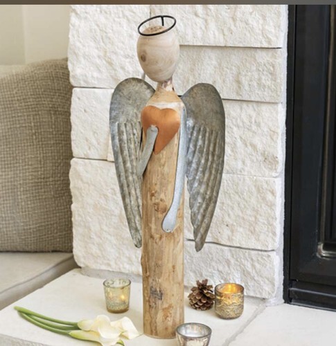 SERAFINA ANGEL WITH HEART STATUE VALENTINES DAY WOOD & METAL HAND MADE 24”