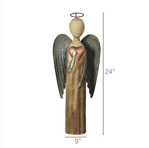 Artisan made of carved wood and hand shaped metal, our abstract Serafina Angel Statue graces the home with a peaceful ambiance. Measuring approximately 10" wide by 24" tall,