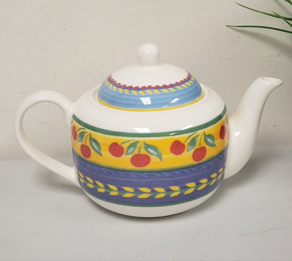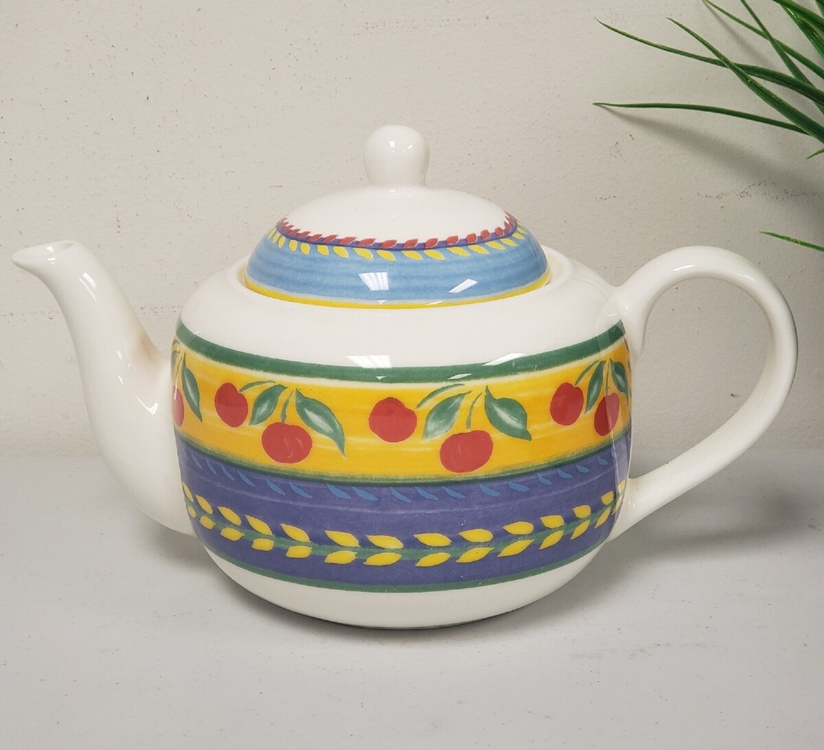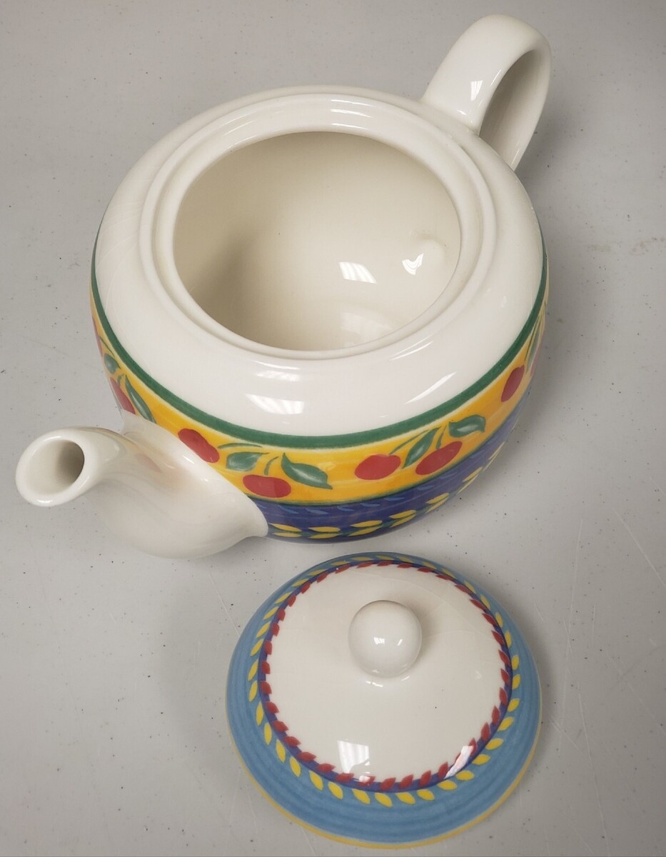 Vintage Vista Alegre hand painted with vibrant colors cherries fruit pattern porcelain teapot