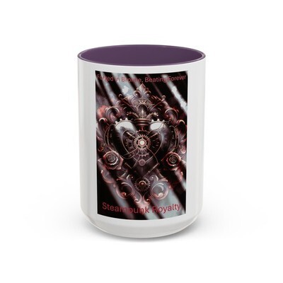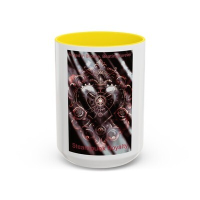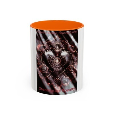 This ceramic accent mug brings a touch of steampunk romance to every sip. The deep black interior and handle frame a detailed mechanical heart design?gears, rivets, and ornate metalwork arranged into a beating, antique-inspired focal piece. Warm copper and bronze tones pop against the glossy white exterior, while subtle text accents nestle into the artwork for an added layer of storytelling. It feels like holding a tiny, portable curiosities cabinet: comforting, a little mysterious, and crafted for slow mornings or late-night creative sessions.