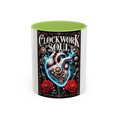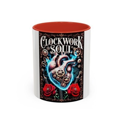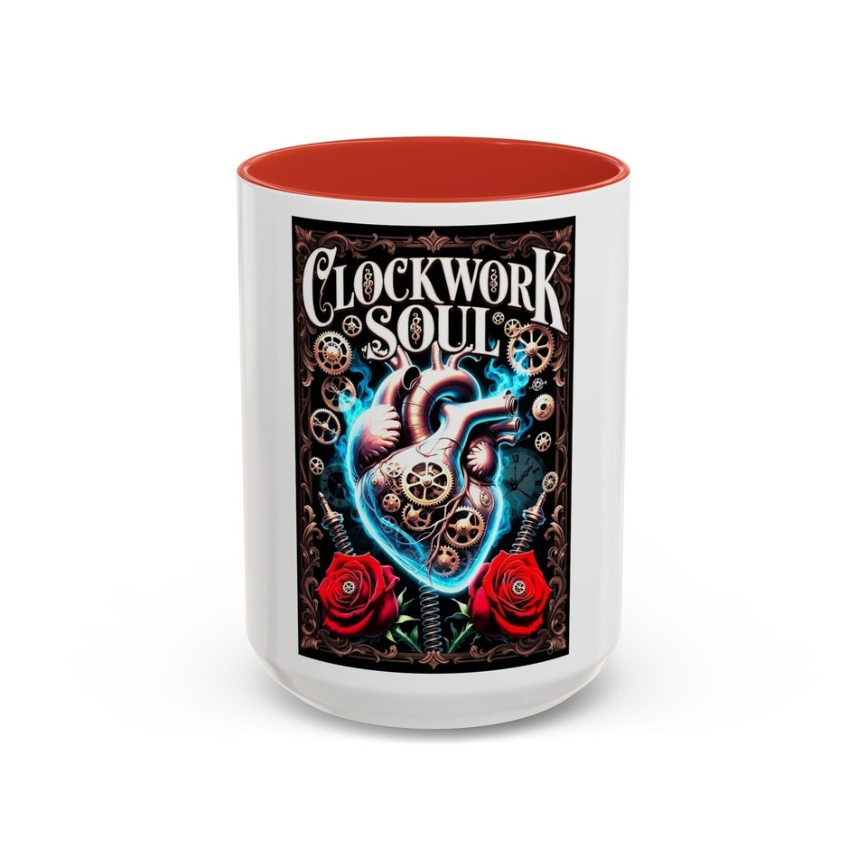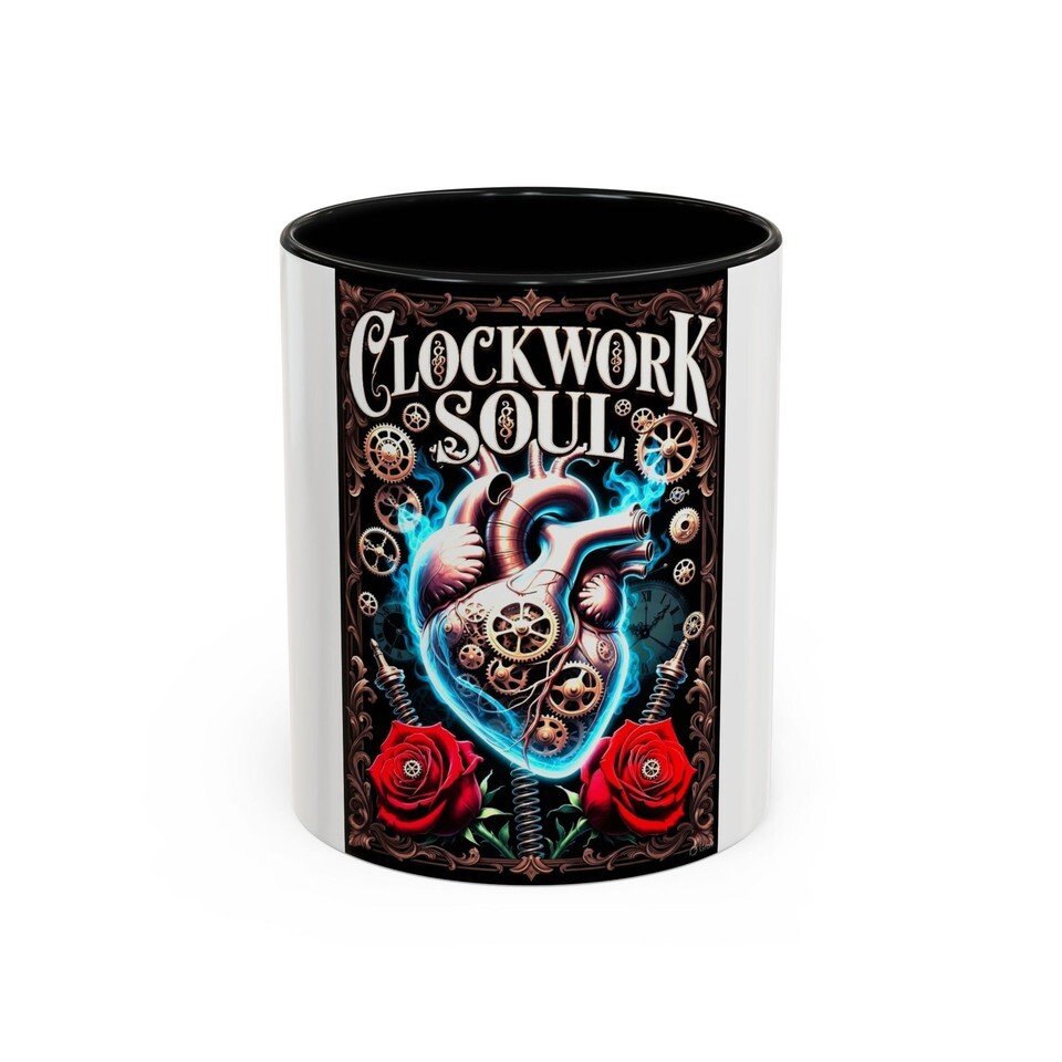 This glossy ceramic mug brings a bold, gothic-steampunk mood to your morning ritual. A richly detailed anatomical heart, clockwork gears and deep red roses wrap the mug in dramatic color against a black interior and handle ? made to feel like a keepsake for anyone who loves dark romantic art. Hold it during slow sips of strong coffee, set it on a cluttered workbench while sketching, or let it sit by your record player as the soundtrack spins. The high-contrast colors pop through the glossy finish and stay bright after dishwasher and microwave use, so the art stays vivid through everyday wear.