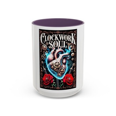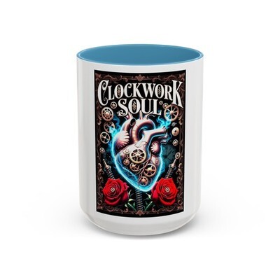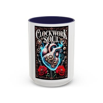 Clockwork Soul Heart Mug Steampunk Mechanical Roses Blue Flame 11oz 15oz