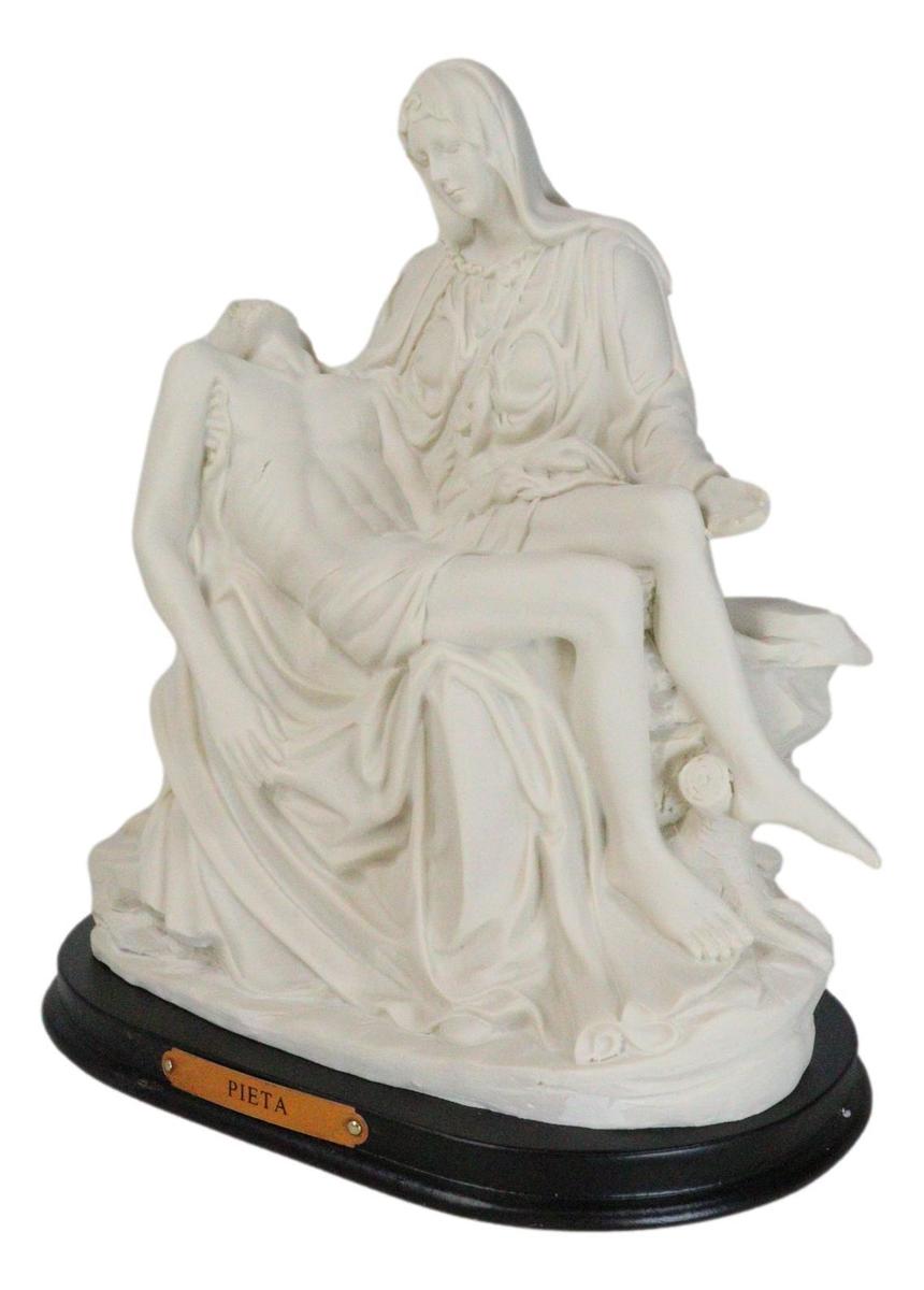 ? This sculpture is a heartfelt reproduction of La pieta, the world famous work of art by Michelangelo at the Vatican church. Our blessed mother Mary is cradling the body of Jesus as he was about to be put in the tomb. Display this figurine at your home or give her away to a loved one!