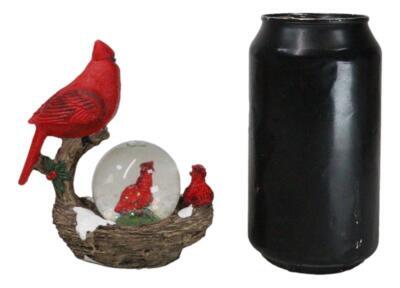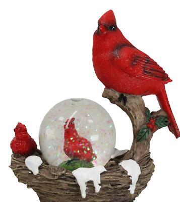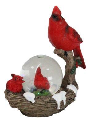 Red Cardinal Bird On Tree Branch Nest With Chicks Water Globe Mini Figurine