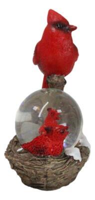 ? This Cardinal Bird By Nest Water Globe Sculpture measures 4.25" tall, 4" wide and 2" deep. The sculpture weighs about 8 ounces.