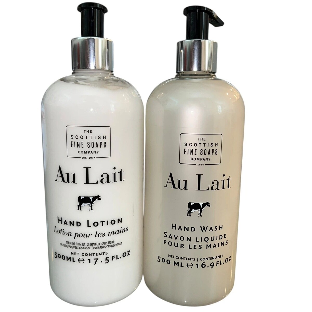 2x THE SCOTTISH FINE SOAPS ~ Au Lait HAND WASH & Hand Lotion Duo