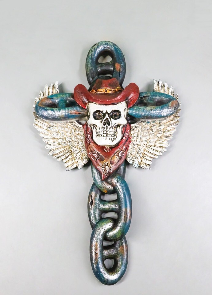 Gothic Angel Winged Cowboy Skull With Red and 50 similar items