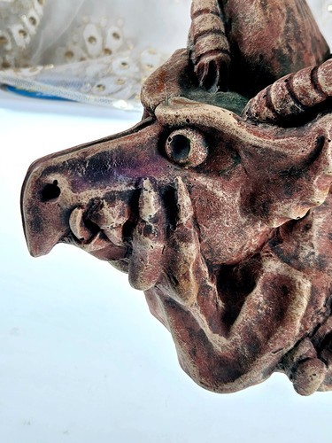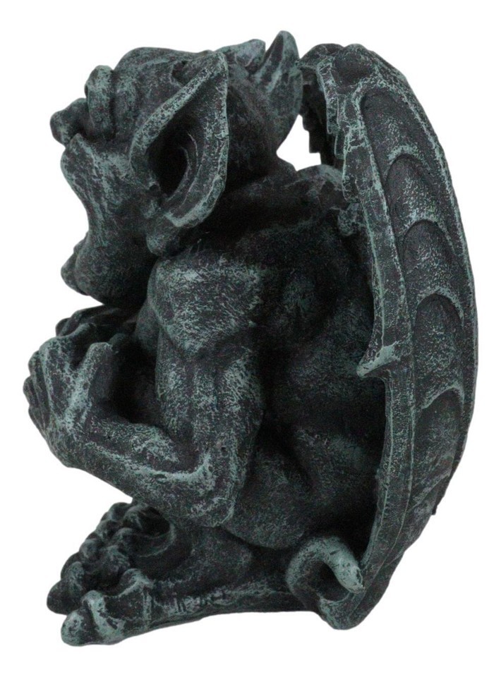 ? This sly little gargoyle would make a great gift for anyone, young or old! Stoic and dormant as he crouches right now, legends has it that in the full moon at midnight, Druid comes to life! In this posture, he smiles wide with a gigantic jaw line with his wings perched behind him. He might bring spooks to your spine as you gaze upon him.